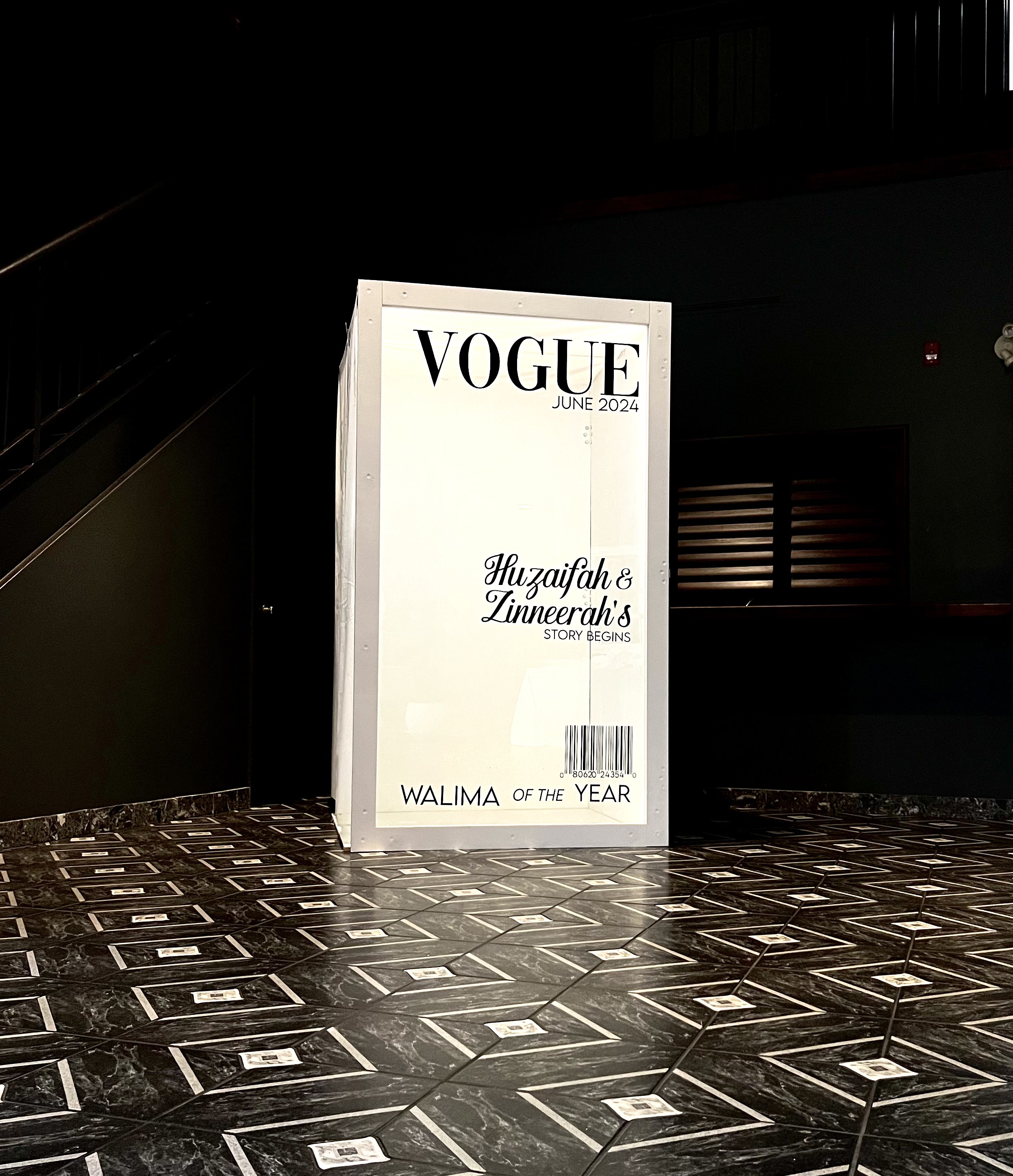 Our walk-in VOGUE style magazine photobooth at a wedding at Blu Legacy Convention Centre. We strongly recommend adding this to all wedding packages – guests love it!